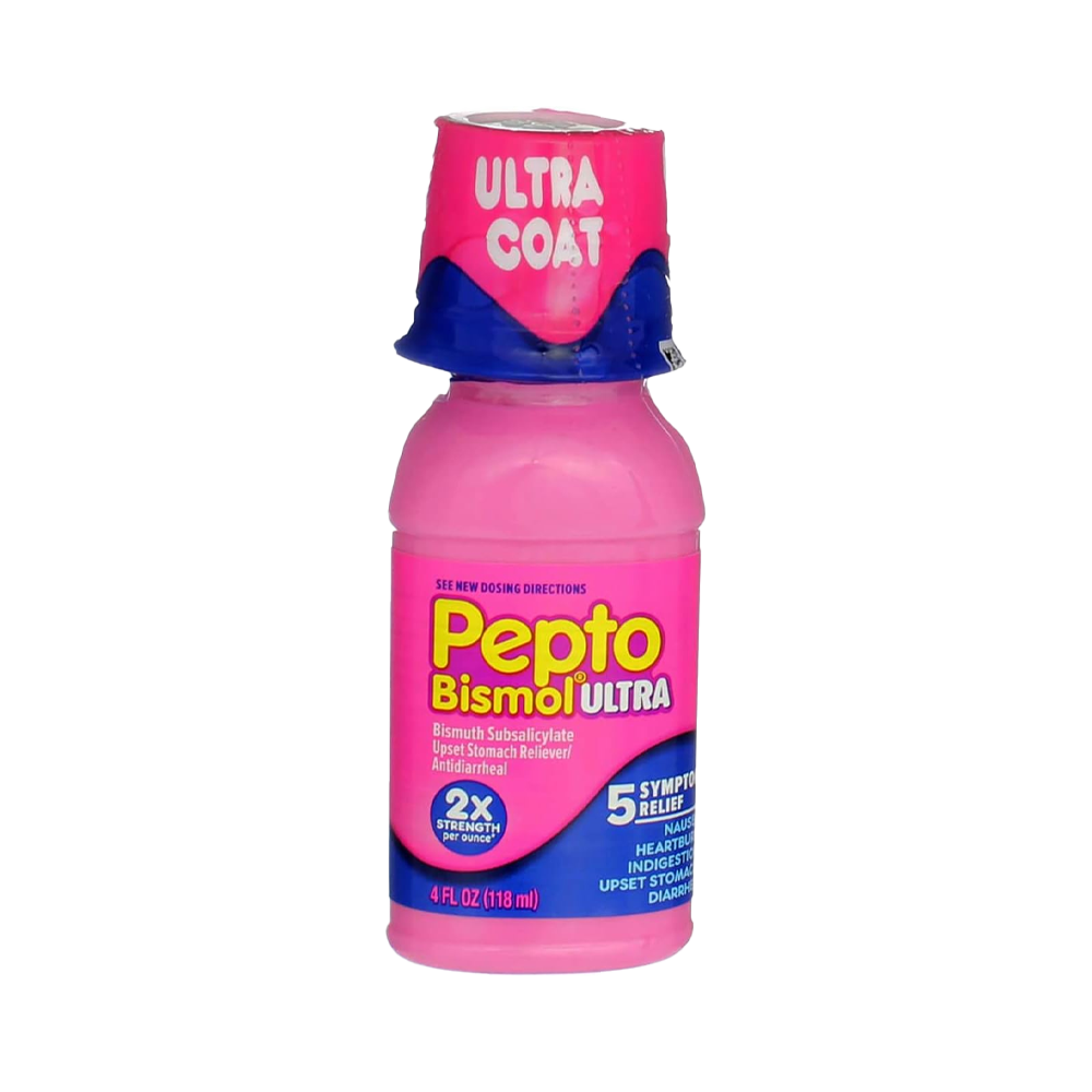 - Pepto Bismol Ultra Liquid for Upset Stomach, 5 Symptom Relief, Original, 12 oz (Pack of 2)